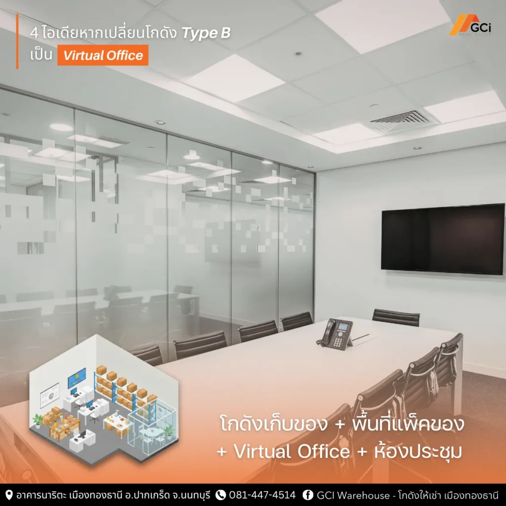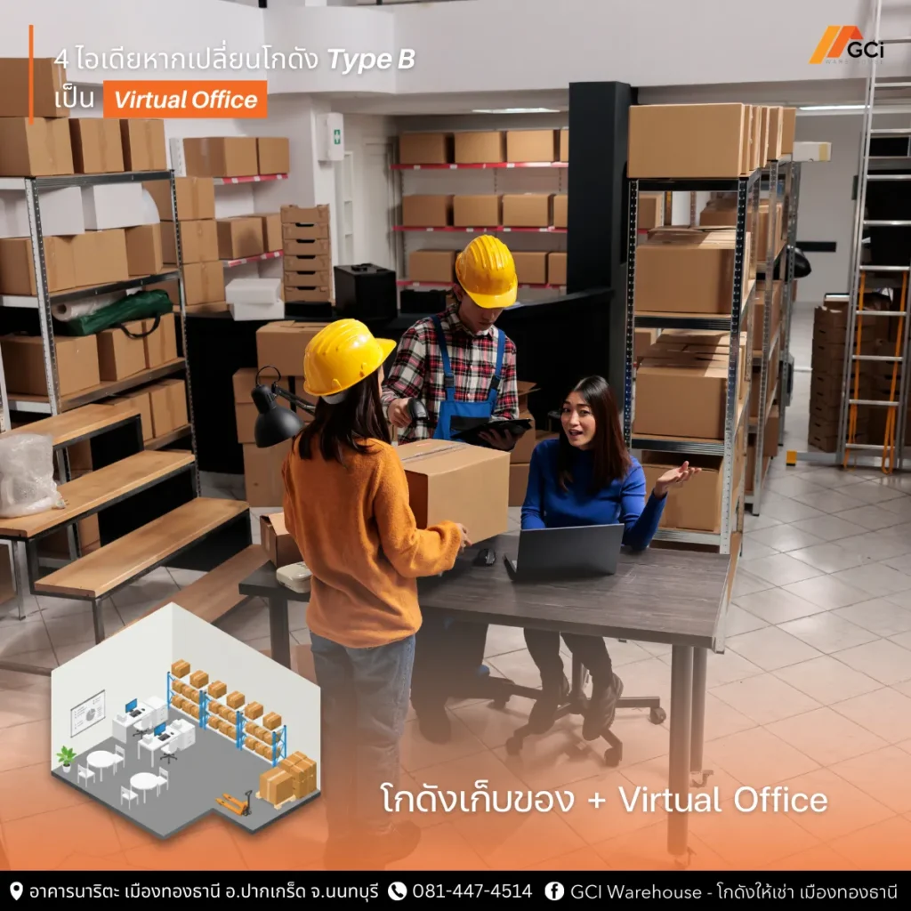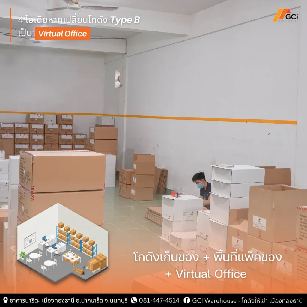 ในยุคที่ต้นทุนการดำเนินธุรกิจเพิ่มสูงขึ้นทุกด้าน ทั้งค่าเช่าสถานที่ ค่าเดินทาง และค่าใช้จ่ายในการบริหารจัดการ ผู้ประกอบการจำนวนมากเริ่มมองหาวิธีใช้พื้นที่ให้คุ้มค่ามากที่สุด หนึ่งในแนวคิดที่ได้รับความสนใจมากขึ้นคือการนำโกดังซึ่งเดิมเป็นเพียงพื้นที่เก็บสินค้า มาดัดแปลงให้กลายเป็นพื้นที่ทำงานแบบครบวงจรหรือที่เรียกว่า Virtual Office ค่ะ โดยในบทความนี้ GCI Warehouse จะพามาดูว่าหากดัดแปลงโกดัง Type B ซึ่งเป็นโกดังพื้นที่เปล่าขนาดประมาณ 270-320 ตารางเมตร ราคาเริ่มต้น 40,000 บาทต่อเดือน ของเราจะเป็นแบบไหนได้บ้าง เพราะโกดังไม่ใช่เพียงพื้นที่โล่งสำหรับวางสินค้าอีกต่อไป แต่เราสามารถทำให้กลายเป็นฐานปฏิบัติการของธุรกิจที่รวมทั้งการจัดการสินค้า การทำงานด้านเอกสาร และการจดทะเบียนบริษัทไว้ในที่เดียวได้เพื่อควบคุมต้นทุนค่ะ