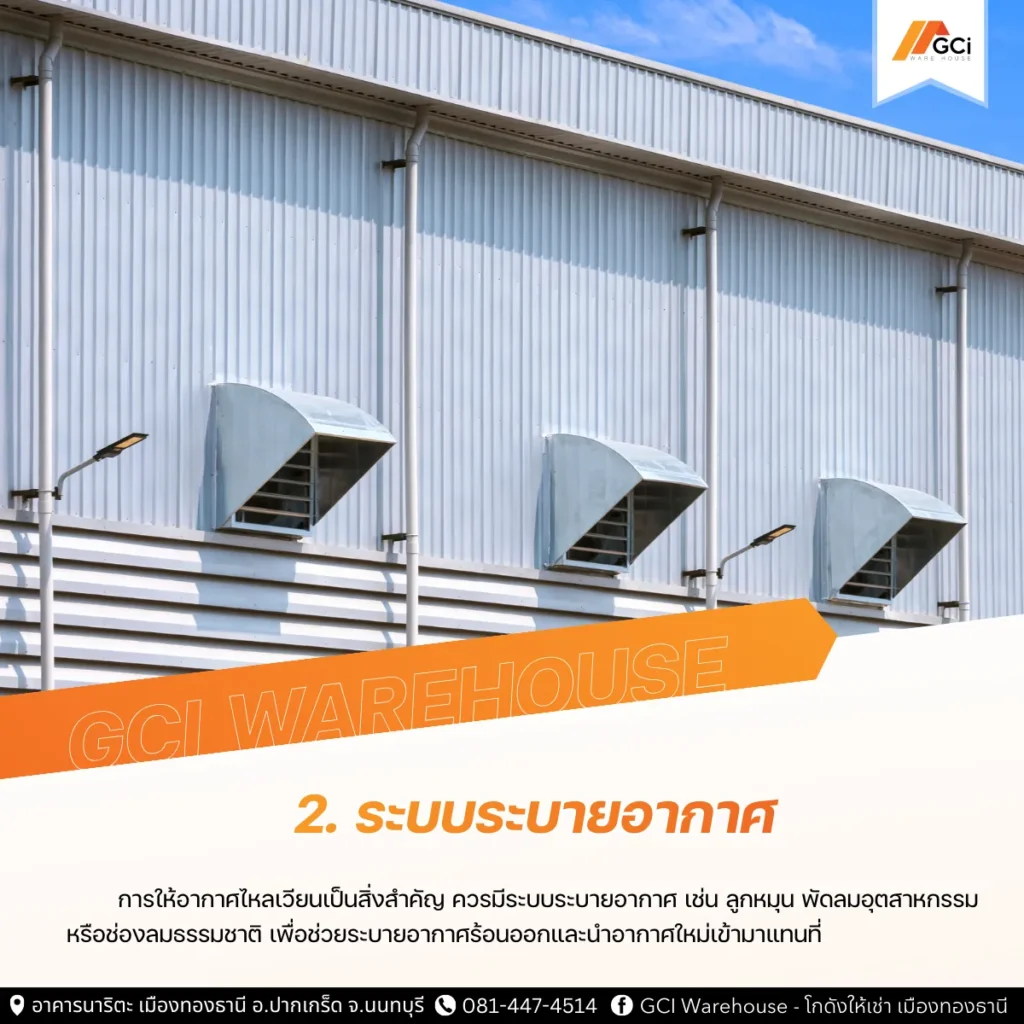 การทำให้อากาศไหลเวียนคือกุญแจสำคัญการปิดตายโกดังเพื่อกันฝุ่นอาจทำให้ความร้อนถูกกักขังอยู่ภายในจนอุณหภูมิพุ่งสูงกว่าภายนอกเสียด้วยซ้ำ การติดตั้งลูกหมุนระบายอากาศ พัดลมระบายอากาศอุตสาหกรรม หรือช่องลมธรรมชาติในตำแหน่งที่ถูกต้องตามทิศทางลมจะช่วยไล่อากาศร้อนออกไปและดึงอากาศใหม่เข้ามาแทนที่ค่ะ นอกจากระบบระบายอากาศตามธรรมชาติแล้ว การเลือกทำเลที่ตั้งที่มีลมพัดผ่านดี ไม่ถูกล้อมรอบด้วยตึกสูงจนปิดทางลมก็ช่วยได้มาก ซึ่งทำเลของ GCI Warehouse เมืองทองธานี จัดว่าเป็นจุดยุทธศาสตร์ที่นอกจากจะเดินทางสะดวกแล้ว ตัวอาคารยังถูกจัดวางให้มีระยะห่างที่พอเหมาะ ช่วยให้การถ่ายเทอากาศทำได้ดีเยี่ยมตลอดทั้งปีเลยค่ะ