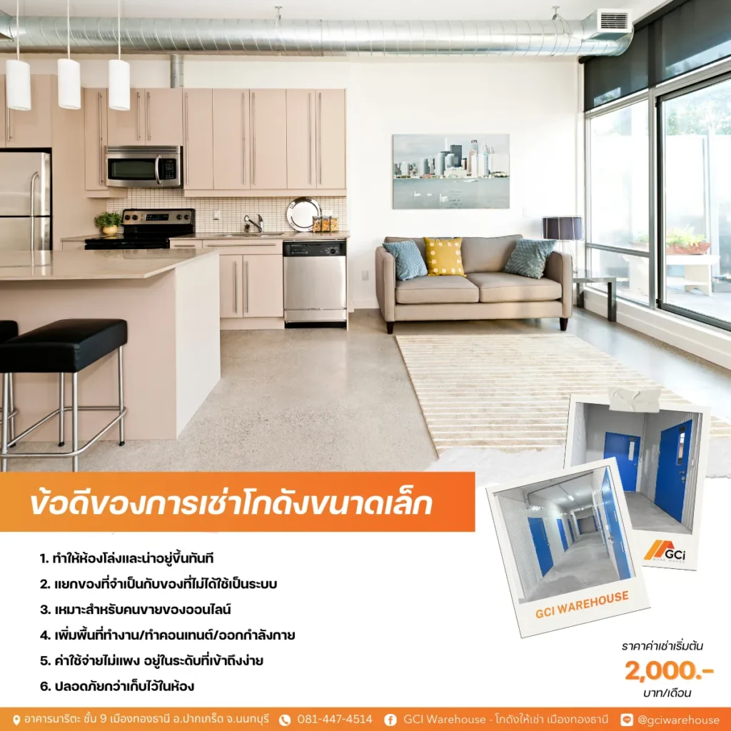 สำหรับคนที่กำลังลังเลว่าควรเช่าโกดังไหม? ลองคิดดูว่าพื้นที่ในคอนโด 1 ตารางเมตรมีค่าเท่าไหร่? แต่การเช่าโกดังขนาดเล็กเพียงไม่กี่ร้อยถึงหลักพันบาทต่อเดือน กลับช่วยให้คุณประหยัดพื้นที่ห้อง ทำให้ชีวิตเป็นระเบียบขึ้น และช่วยให้ห้องน่าอยู่ขึ้นอย่างมาก คิดง่าย ๆ หากการย้ายของไปเก็บที่โกดังช่วยให้คุณมีพื้นที่ชีวิตมากขึ้น ไม่ว่าจะเป็นพื้นที่พักผ่อน พื้นที่ทำงาน หรือพื้นที่สำหรับกิจกรรมต่าง ๆ ก็ถือว่าคุ้มค่ามากแล้ว นอกจากนี้บริการของ GCI Warehouse ยังพร้อมตอบโจทย์ทั้ง