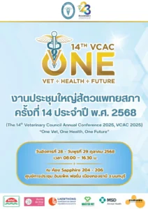 งานประชุมวิชาการสำคัญของสัตวแพทย์ไทย ภายใต้ธีม “ONE VET, ONE HEALTH, ONE FUTURE” รวมวิทยากรชั้นนำ การบรรยาย และโอกาสในการสร้างเครือข่าย พร้อมรับหน่วยกิตวิชาชีพสูงสุด 20 หน่วยกิต