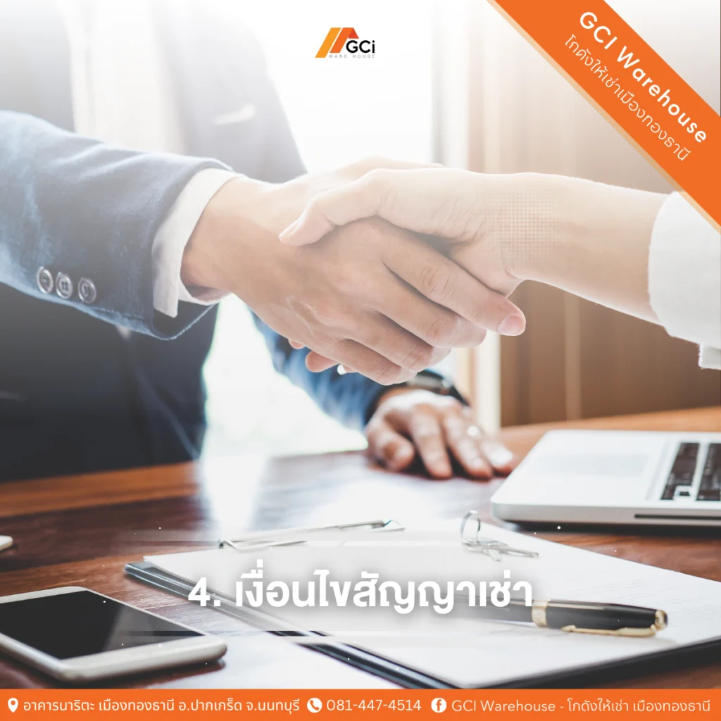 เรื่องสัญญาเช่ามักเป็นสิ่งที่หลายคนเซ็นไปโดยไม่อ่านละเอียด ซึ่งอาจทำให้เกิดปัญหาในภายหลัง เงื่อนไขที่ควรพิจารณามีดังต่อไปนี้ค่ะ ระยะเวลาการเช่า มีความยืดหยุ่นหรือไม่ ค่ามัดจำและค่าใช้จ่ายแฝง เช่น ค่าบำรุงรักษา ค่าน้ำ ค่าไฟ ข้อกำหนดการใช้งานพื้นที่ เช่น ห้ามเก็บสินค้าประเภทใดบ้าง การปรับค่าเช่าในอนาคต มีระบุไว้ชัดเจนหรือไม่ การเช่าโกดังกับผู้ให้บริการที่มีความยืดหยุ่นและโปร่งใส จะช่วยให้คุณวางแผนธุรกิจได้ง่ายขึ้น และไม่ต้องกังวลปัญหาที่จะตามมาค่ะ ซึ่งที่ GCI Warehouse โกดังให้เช่าเมืองทองธานีของเราพร้อมให้คำปรึกษาอย่างตรงไปตรงมาค่ะ
