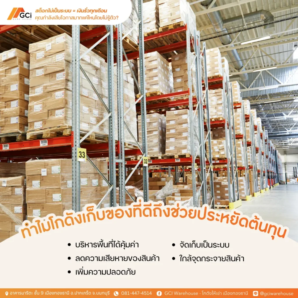 หลายธุรกิจมักจะโฟกัสที่ยอดขายมากกว่าการจัดเก็บสินค้า แต่ในความเป็นจริงแล้ว การจัดการหลังบ้านอย่างมีระบบคือสิ่งที่ช่วยให้หน้าบ้านแข็งแรง หากธุรกิจของคุณยังต้องเผชิญปัญหาสินค้าหาย สต็อกไม่ตรง หรือการขนส่งล่าช้า ลองเริ่มต้นใหม่ด้วยการจัดระบบการเก็บของให้ชัดเจน และเลือกโกดังที่ออกแบบมาเพื่อธุรกิจอย่างแท้จริง GCI Warehouse พร้อมเป็นพันธมิตรของคุณในการจัดเก็บสินค้าอย่างมีประสิทธิภาพ ด้วยทำเลที่สะดวก ความปลอดภัยครบ และสิ่งอำนวยความสะดวก เพราะเมื่อการเก็บของมีระบบธุรกิจก็จะไม่เงินรั่วอีกต่อไป